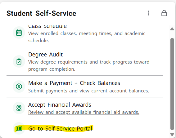 At the Student Portal, click Go to Self-Service Portal.