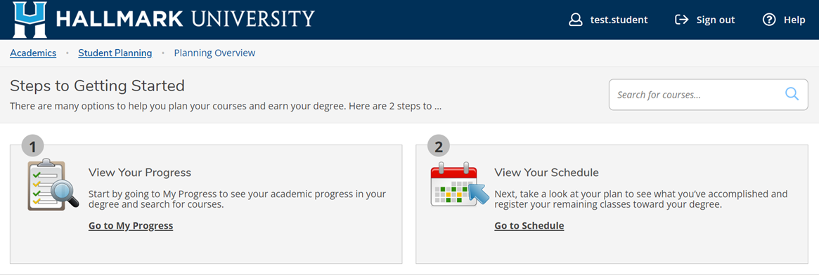 - On the homepage, select Student Planning. You can view your academic progress and current term schedule on this page.